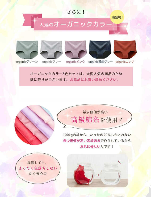 女性の美を応援するお店 ROMANTICインナー 高級綿糸の綿 ショーツ 3枚 セット レディース ハイウエスト 深ばき 快眠 まとめ買い ショーツセット 女性 深め 下着(クロッチ 綿100) お腹 パンツ コットン 婦人 価格: ¥1,780 (税込) 販売期間: サイズ: 選択してください M L XL 2XL 3XL カラー(1枚目): 選択してください グレー ブラック アプリコット レッド ローズピンク パープル ライトピンク スモークピンク 水色 organicグリーン organicグレー organicピンク organic濃紺グレー organicエンジ 生理用ブラック カラー(2枚目): 選択してください グレー ブラック アプリコット レッド ローズピンク パープル ライトピンク スモークピンク 水色 organicグリーン organicグレー organicピンク organic濃紺グレー organicエンジ 生理用ブラック カラー(3枚目): 選択してください グレー ブラック アプリコット レッド ローズピンク パープル ライトピンク スモークピンク 水色 organicグリーン organicグレー organicピンク organic濃紺グレー organicエンジ 生理用ブラック 数量: 枚 在庫 在庫あり 返品についての詳細はこちら 高級綿糸の綿 ショーツ 3枚 セット レディース ハイウエスト 深ばき 快眠 まとめ買い ショーツセット